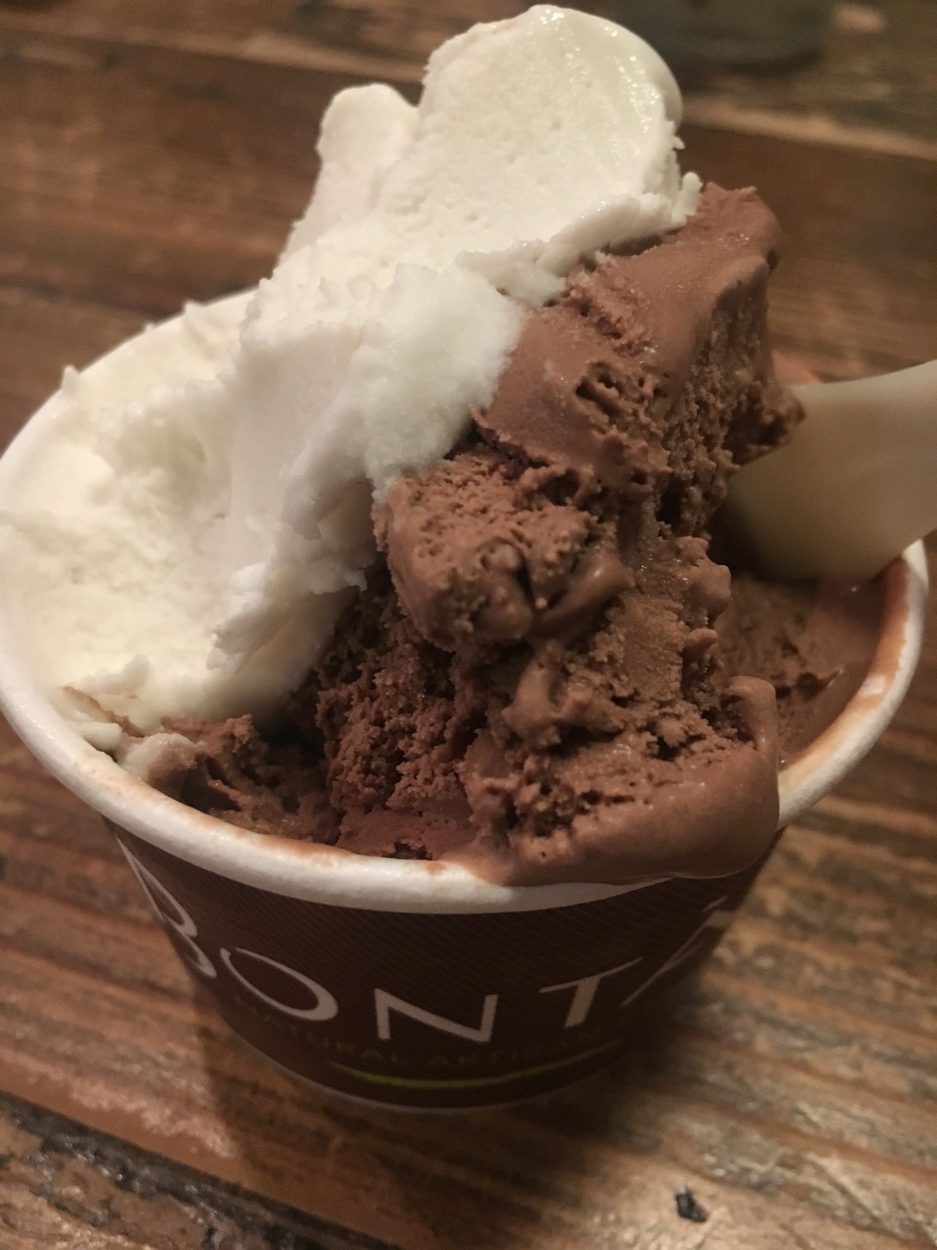 Karin suggested Bonta Natural Artisan Gelato for dessert, and I wasn’t about to protest that! Even though it was past 9 PM, the line was still out the door! I had the (non-dairy) coconut lime and chocolate coconut flavors. The best!!