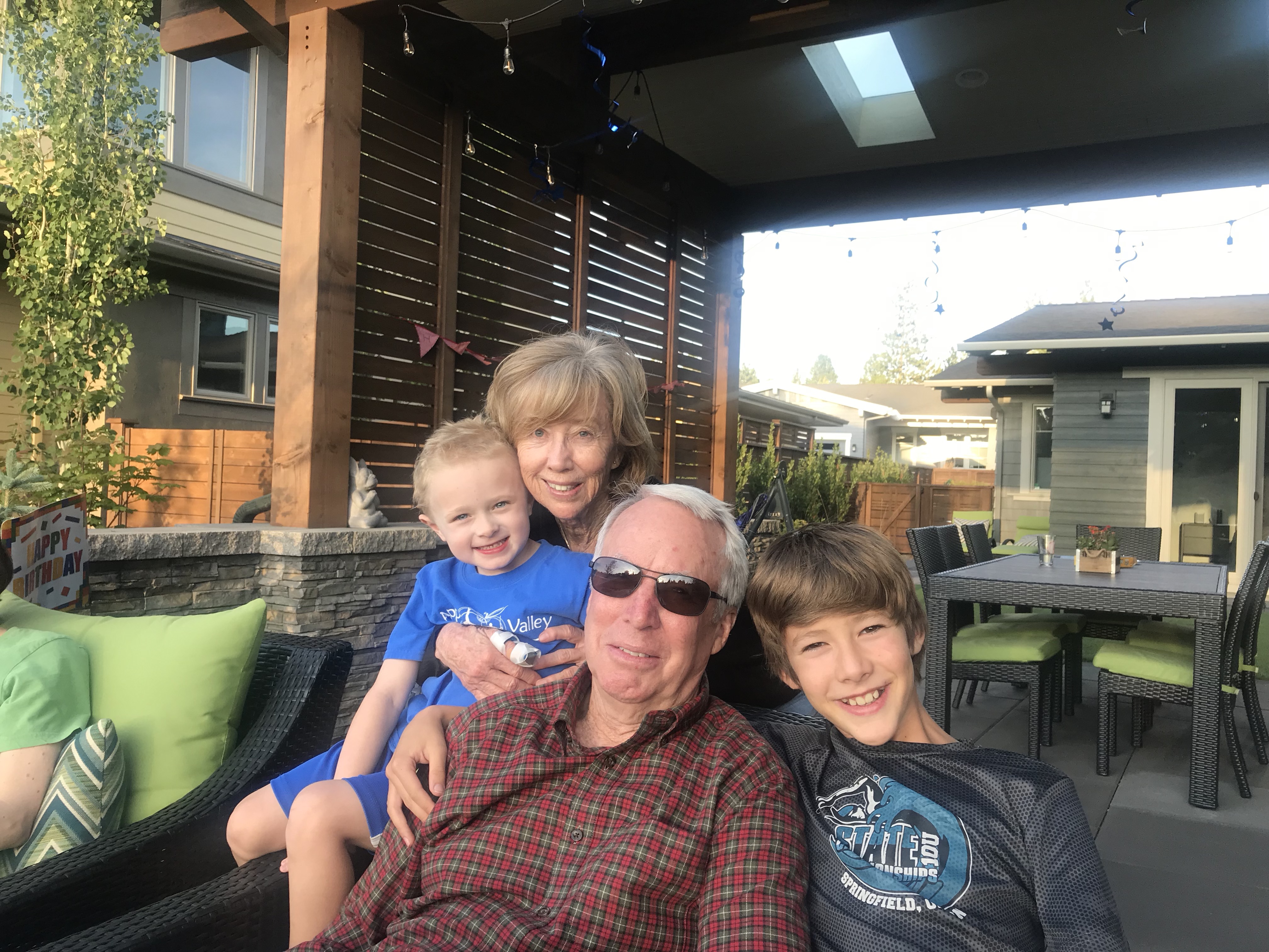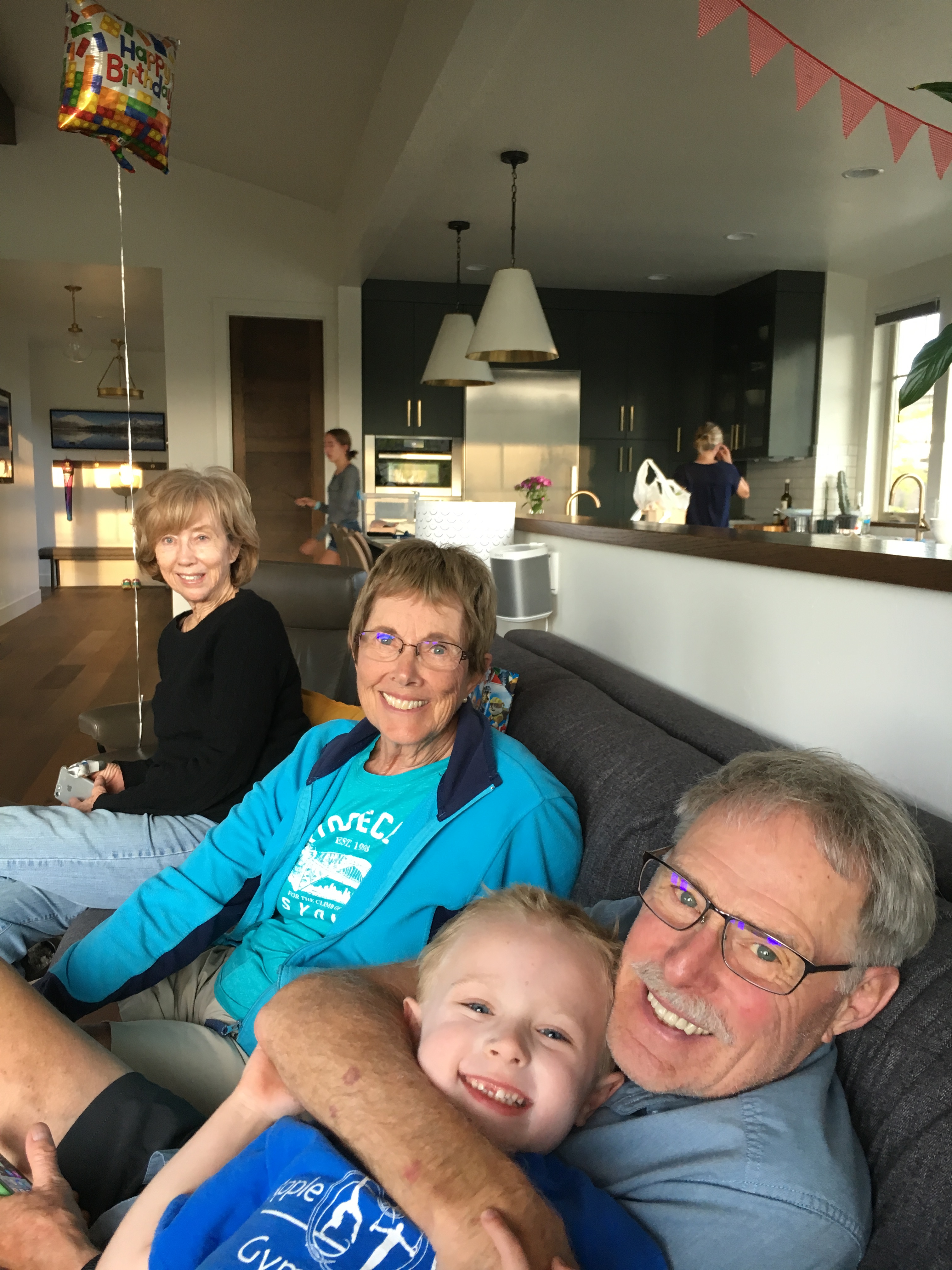 In the afternoon/evening, we gathered at Karin’s house for a party to celebrate Eli’s 12th birthday and Todd’s 5th birthday. This included Nana and Grampy (Jason’s parents). Beforehand, Todd looked for fish in the pond/lake located across the street. We met two boys from Juneau (AK) who were catching/releasing fish, so Todd did, in fact, have the chance to hold a fish then release it back in the water.
