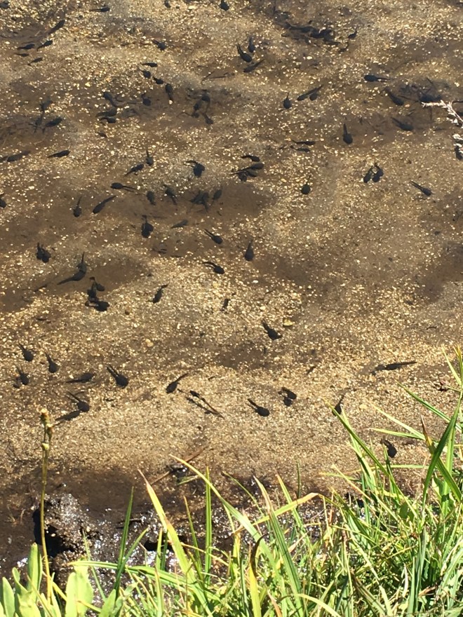 As soon as the trail met the water, Todd was looking for fish to catch with his net. He pretty quickly caught a tadpole and examined it in his net before releasing it.