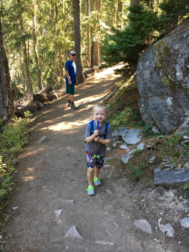 Our small family was due for a hike, so we picked a new place to explore over Labor Day weekend. Hidden Lake (Trail 1510) is right by Lake Wenatchee. It’s a nice, short distance for hiking with kids (0.8 miles round trip).