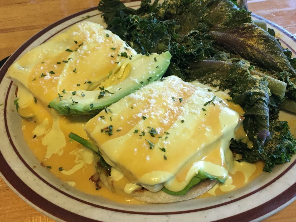 This morning, we met Ken and Daisy for breakfast at Wayward Vegan Cafe. I ordered the Garden Benedict…