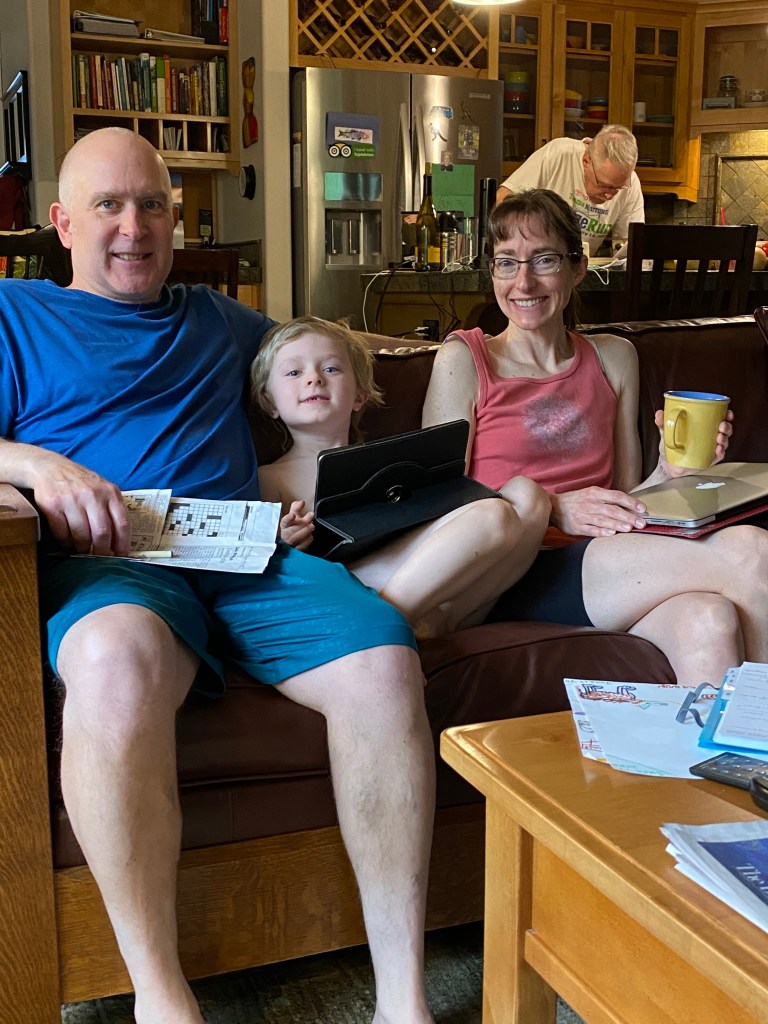 During the day, the whole family biked around Discovery Park for several laps. (This was Todd’s first time pedal biking in Bend!). Eric snapped some pictures of our group from the trail on the hill. We had lunch at my parent’s house, then hung out at my sister’s house once again.