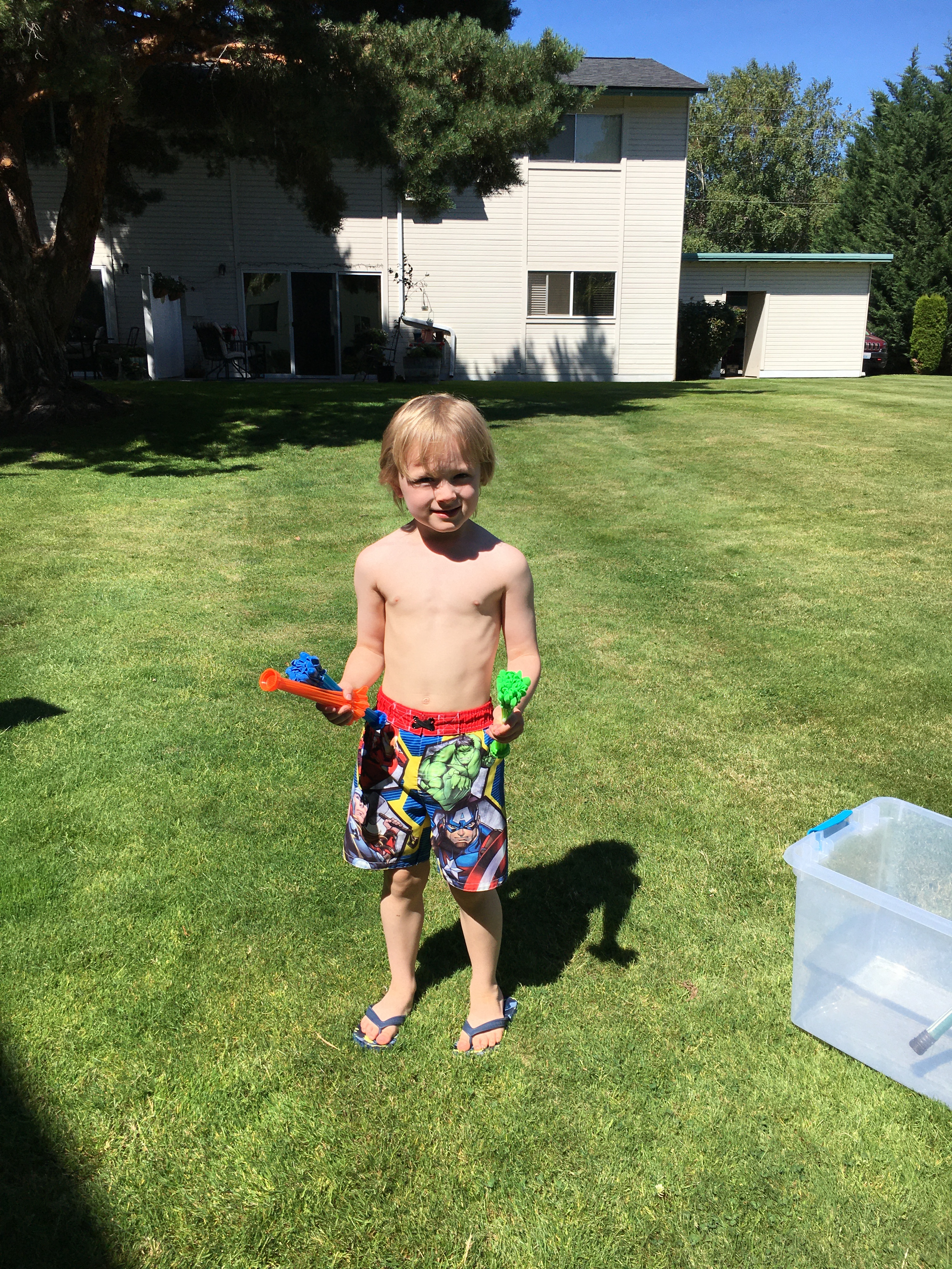 - Bunch o Balloons water balloon fights and spraying water with the hose (7/16, 7/19)