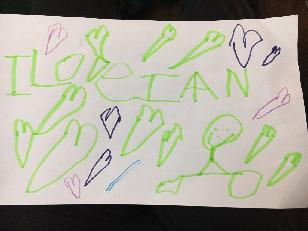 Todd made a forest picture for Eli: “To Eli, I love you, Eli”