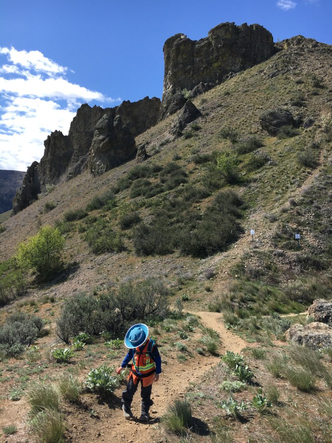 We parked at the WRAC parking lot and hiked up the Jacobson Preserve trail. Interesting fact: Eric’s mom’s first cousin is Sharon Jacobson…the same Jacobson family who donated this land to the Land Trust here in Wenatchee.